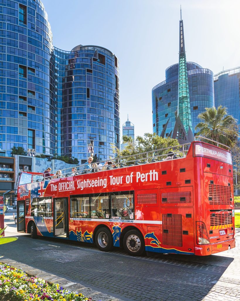 From here, it is a short ride or stroll to Elizabeth Quay, the city’s revitalised waterfront precinct. This is where riverside promenades meet striking public art, cafés, and family-friendly attractions. If you want a relaxed overview of the area without worrying about directions, the Perth Explorer double decker bus loops through here as part of its sightseeing route, connecting the quay with Kings Park and the CBD.