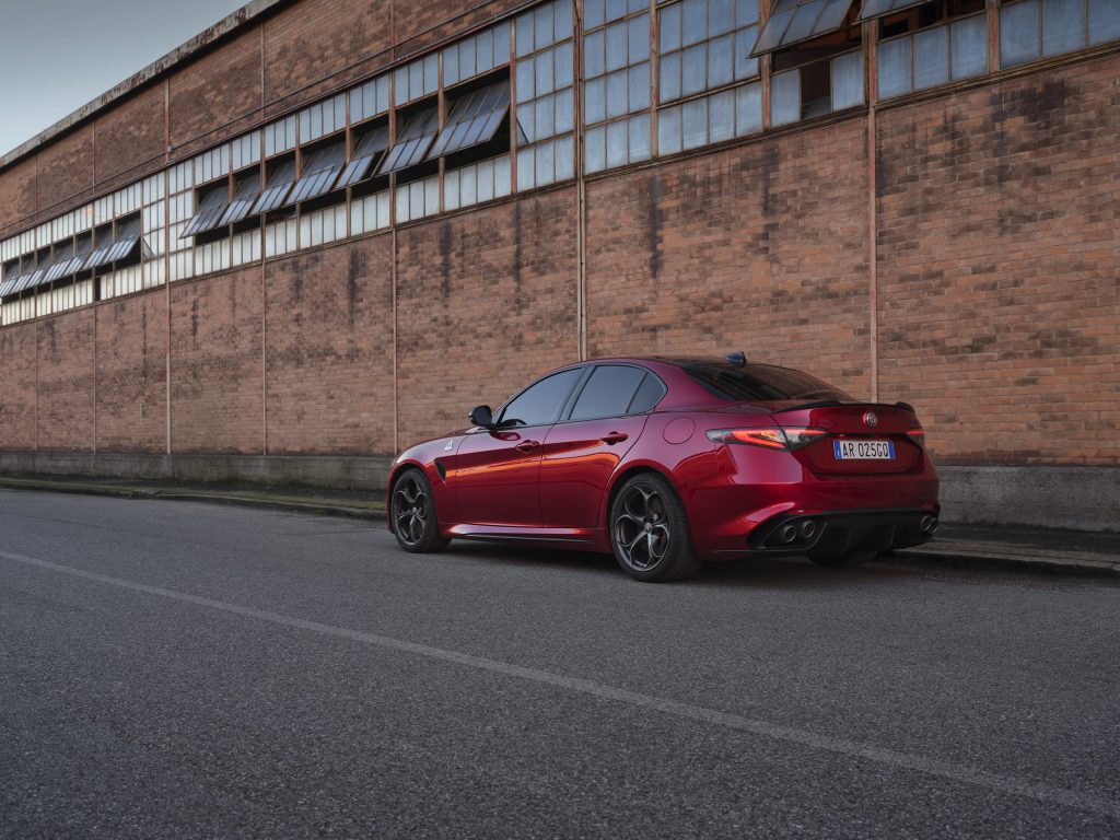 Under the bonnet roars the powerful 520hp 2.9-litre V6, which embodies the sporting tradition of Alfa Romeo and restores the brand’s instinctive connection to driving. The sound of the V6 is made even more distinctive by the Akrapovič exhaust system, included as standard. Carbon fibre, a symbol of the racing soul of the Quadrifoglio, is used on components such as the front badge, mirror caps, central tunnel and dashboard, while an exposed carbon-fibre roof adds a technical and assertive touch to the car. Finally, the standard carbon-ceramic braking system, which as well as guaranteeing the utmost braking performance, adds a distinctive stylistic touch thanks to the red Alfa Romeo signature on the burnished anodized calipers.