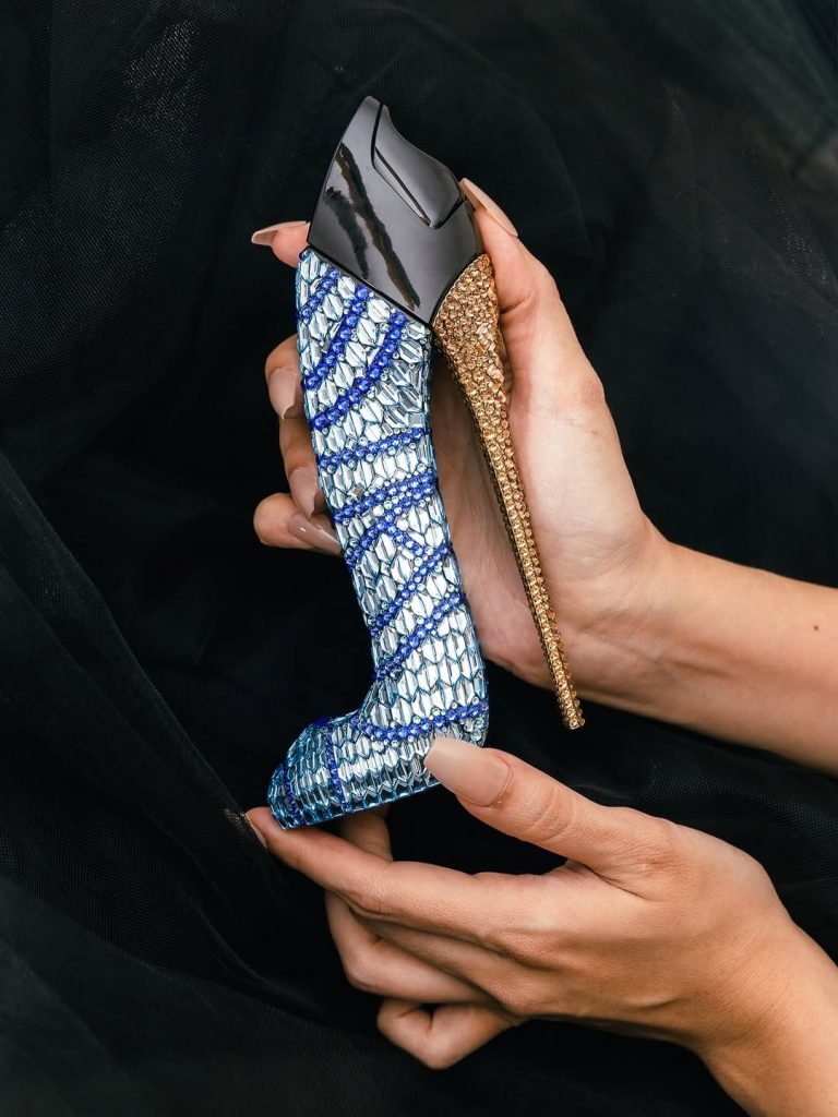 Elevating the icon into a dazzling objet d’art, the Good Girl Superluxe Collector’s Edition is home to more than 2,000 Swarovski crystals which are meticulously applied by hand over the course of eighteen hours. The luminous gradient of sapphire and aquamarine crystals sweeps across the instep, while the golden heel is adorned with Light Colorado Topaz crystals, each glimmering with precision and brilliance. The bottle rests within a plush blue velvet case with a padded interior reminiscent of a fine jewellery box, reflecting both the artistry of Carolina Herrera and the timeless brilliance of Swarovski.