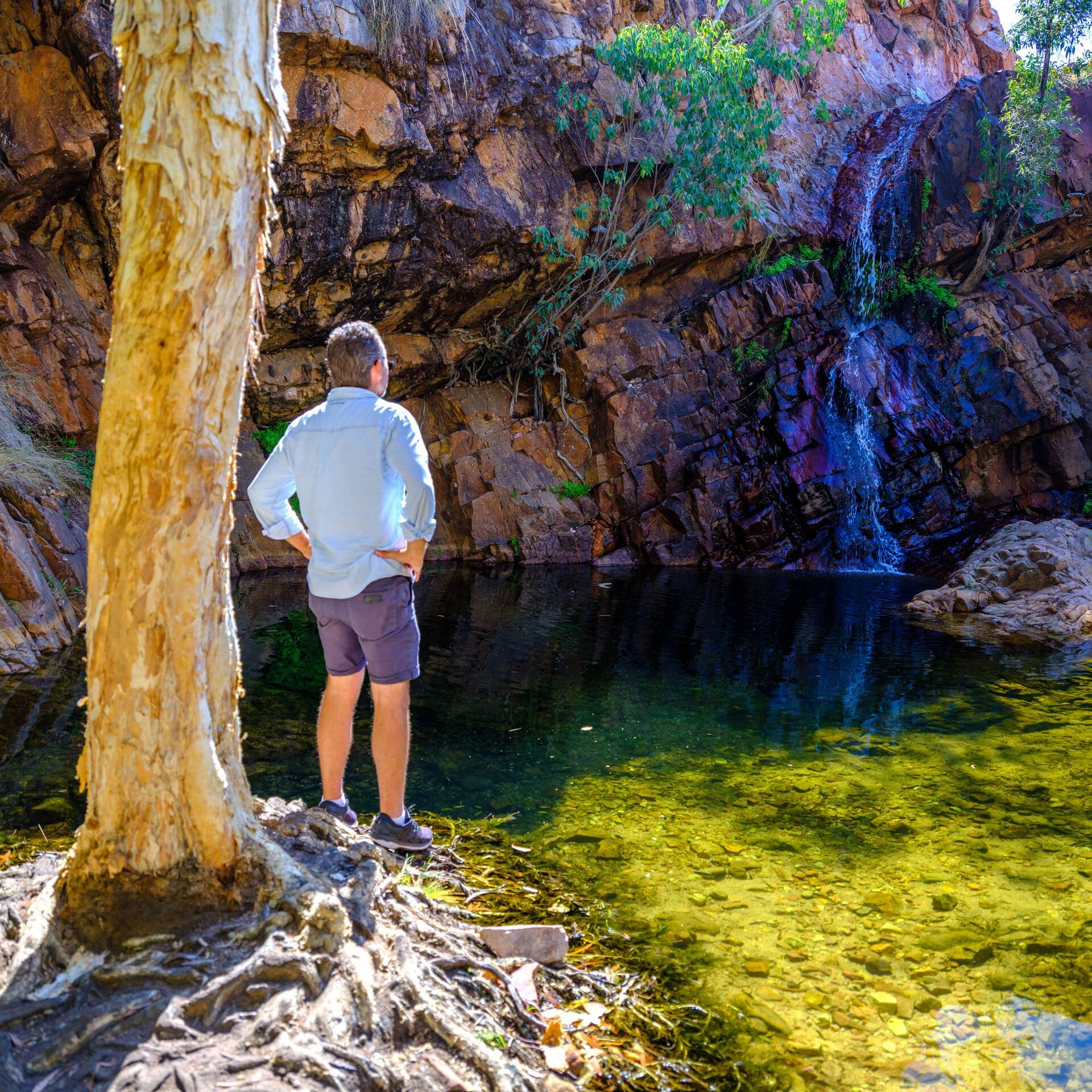 For something intimate and tranquil, head to Molly Springs, a hidden gem about 30 kilometres from Kununurra in the Ngamoowalem Conservation Park. Unlike the towering waterfalls elsewhere, Molly Springs is a small but permanent spring-fed pool, shaded by native vegetation and fed by a gentle cascade.