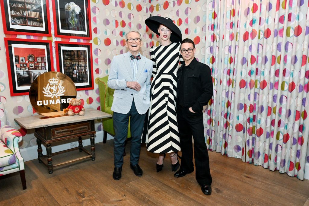 Bob Mackie, Coco Rocha and Christian Siriano gather to reveal details on Cunard’s upcoming Transatlantic Fashion Week voyage on Queen Mary 2, which sails from New York this October. Coco Rocha is wearing Christian’s specially-created dress inspired by the upcoming sailing. (Photo by Diane Bondareff for Cunard)