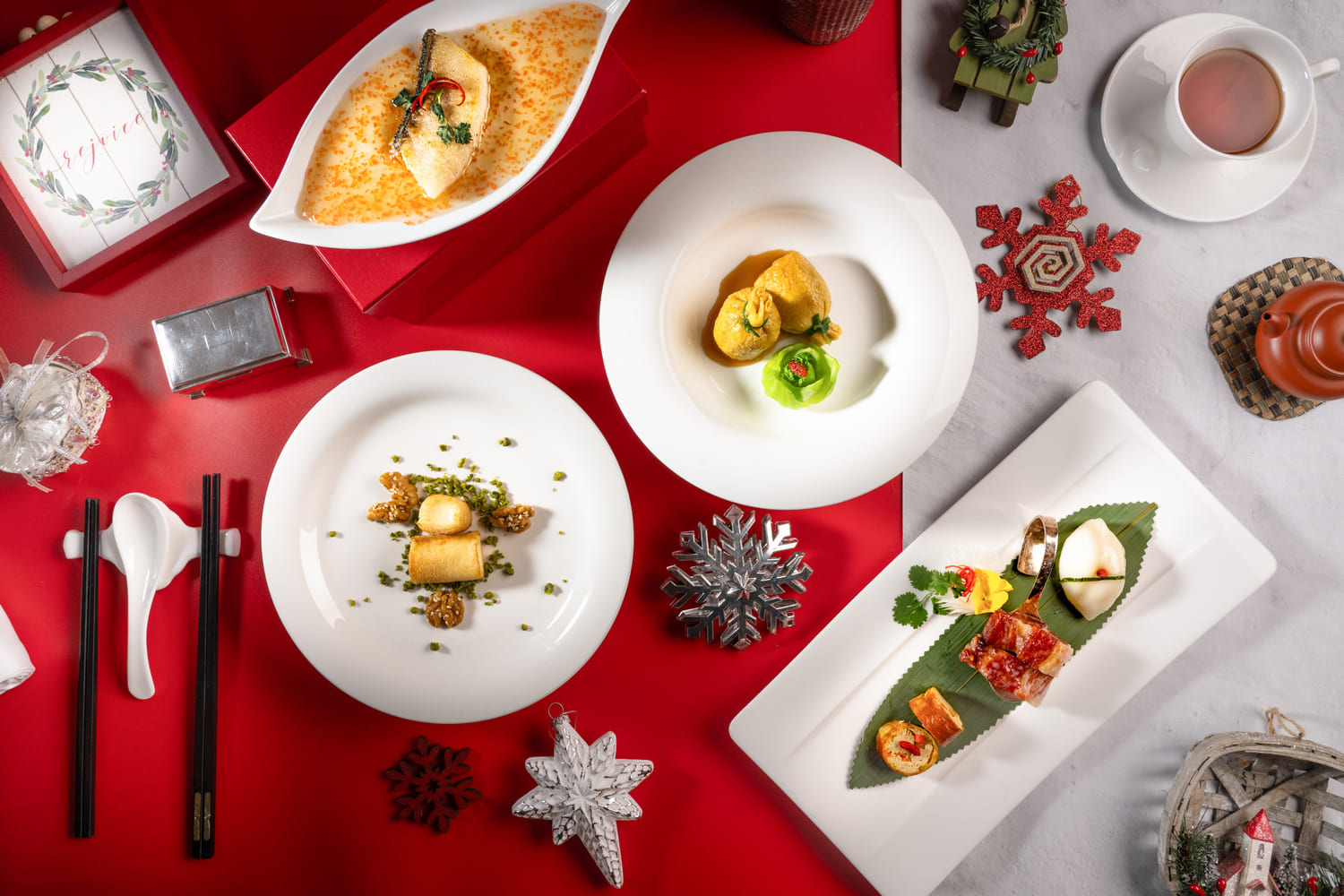 From the hot station, savour exquisite dishes like Pan-seared Foie Gras on Brioche Toast with Raspberry Coulis, Abalone, Fish Maw and Chicken Double-Boiled Soup, Roasted Lamb Rack Provencal, and Grilled Prawns with Garlic Butter. Indulge in decadent delights at the Suisse Raclette Cheese station, Cream Cheese Berries Mille Feuille, Fancy Macarons, and Mini Christmas Cookies — all designed to make your festive experience truly memorable.