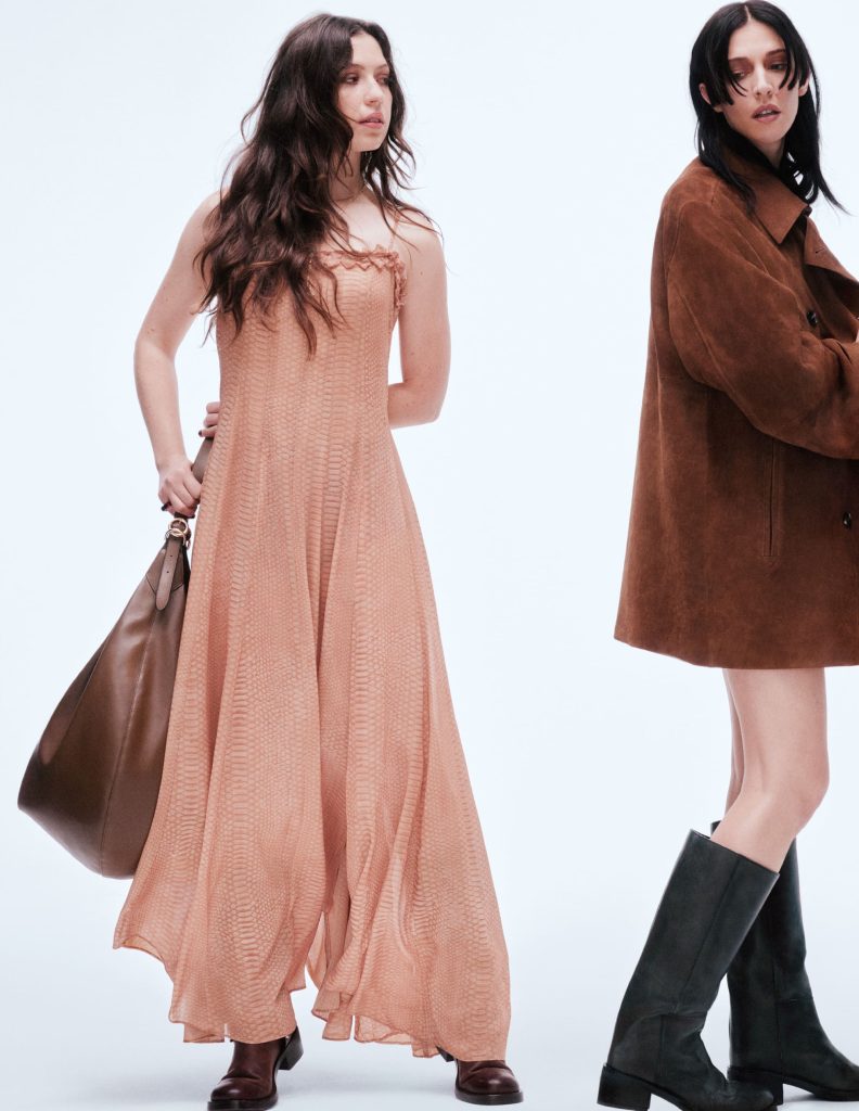 The collection will be released in two chapters that complement each other as well as offer unique perspective and attitude, paying homage to the multi-faceted nature of contemporary femininity. The first drop evokes an air of ethereal bohemian, offering a fresh take on Spring style, fit for festival dressing to city chic with nods to iconic glam rock musicians and romantic styling.