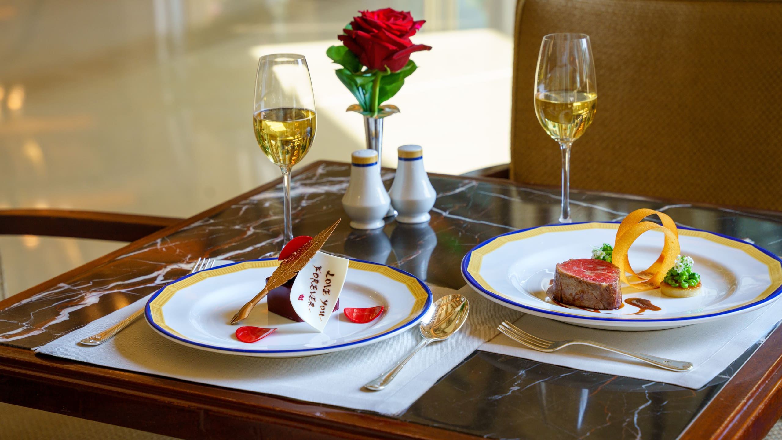 In addition to the exquisite dining experience, all couples who dine in Felix, The Lobby, Chesa or The Pool with the special menus will be treated to two glasses of Champagne to complement their desserts. Guests dining at Gaddi’s can elevate their experience further by opting for wine pairings meticulously selected by its sommelier team, available at an additional cost.