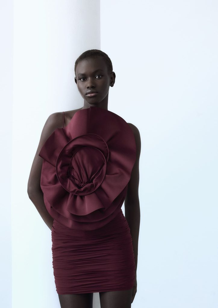 The collection also marks the 10-year anniversary of the Magda Butrym brand, presenting the opportunity to revisit Butrym’s most beloved silhouettes. It features various iconic garments from the house’s archive, such as delicate dresses with petals and blooming flowers, wide-shouldered tailoring and structured oversized coats. Key pieces in the collection include a red ruffled gown, which evoke the feel of a bouquet of roses, a sweeping crochet lace gown, and a rich burgundy leather coat. Each piece embodies the essence of Magda’s signature blend of femininity, boldness and intricate craftsmanship.