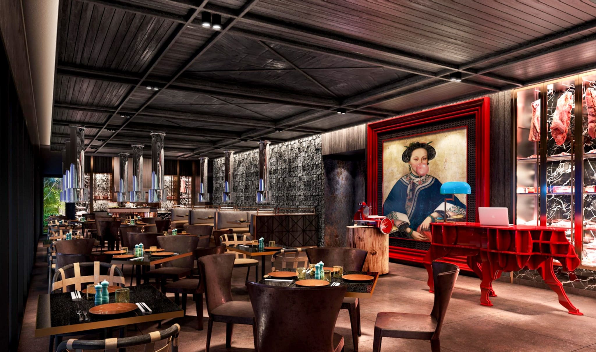 Panasia Grill celebrates the primal art of grilling, transforming fire into more than a cooking method – it becomes a sensory journey. The design reflects this ethos with charred wood textures, rock-clad walls inspired by charcoal, and artistic features that evoke the heat and vibrance of the flames. Guests are invited to cook their selections tableside, enhancing the convivial and interactive spirit of the restaurant.
