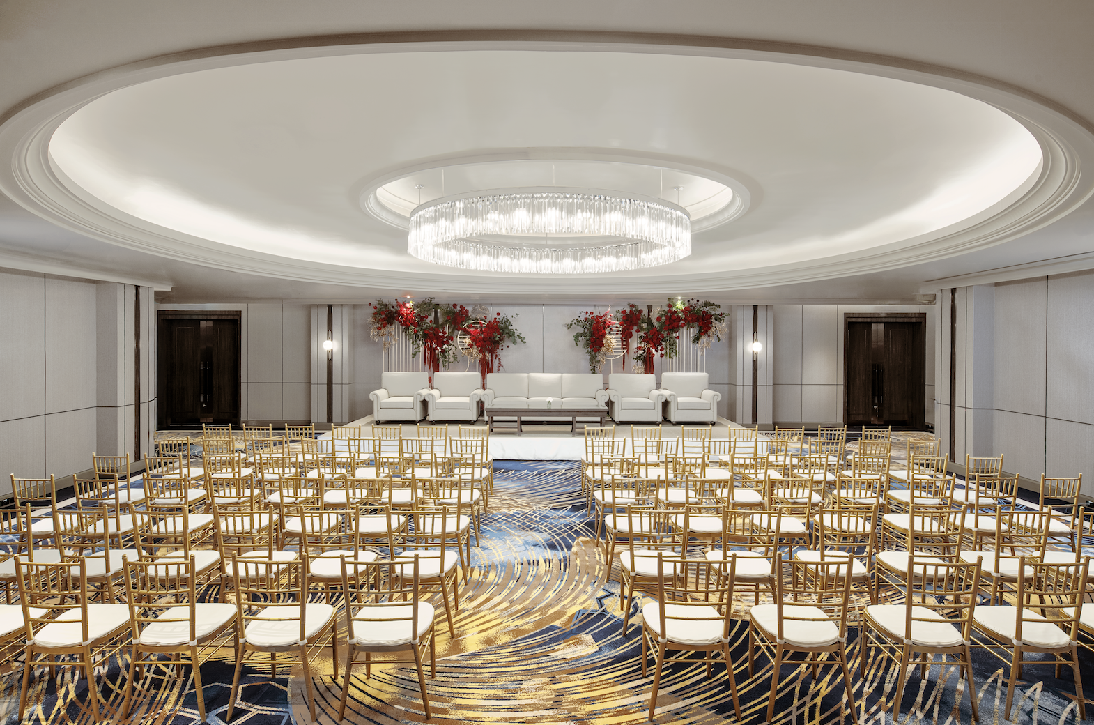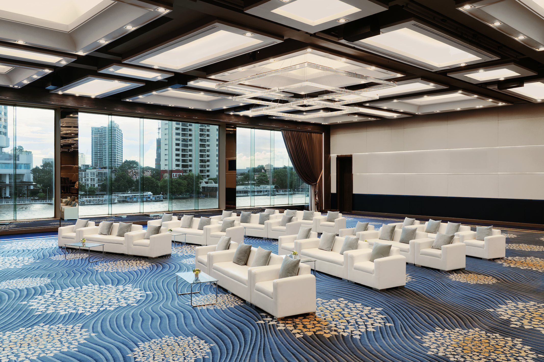The spacious ballroom offers breathtaking views of the iconic Chao Phraya River, bathed in natural light