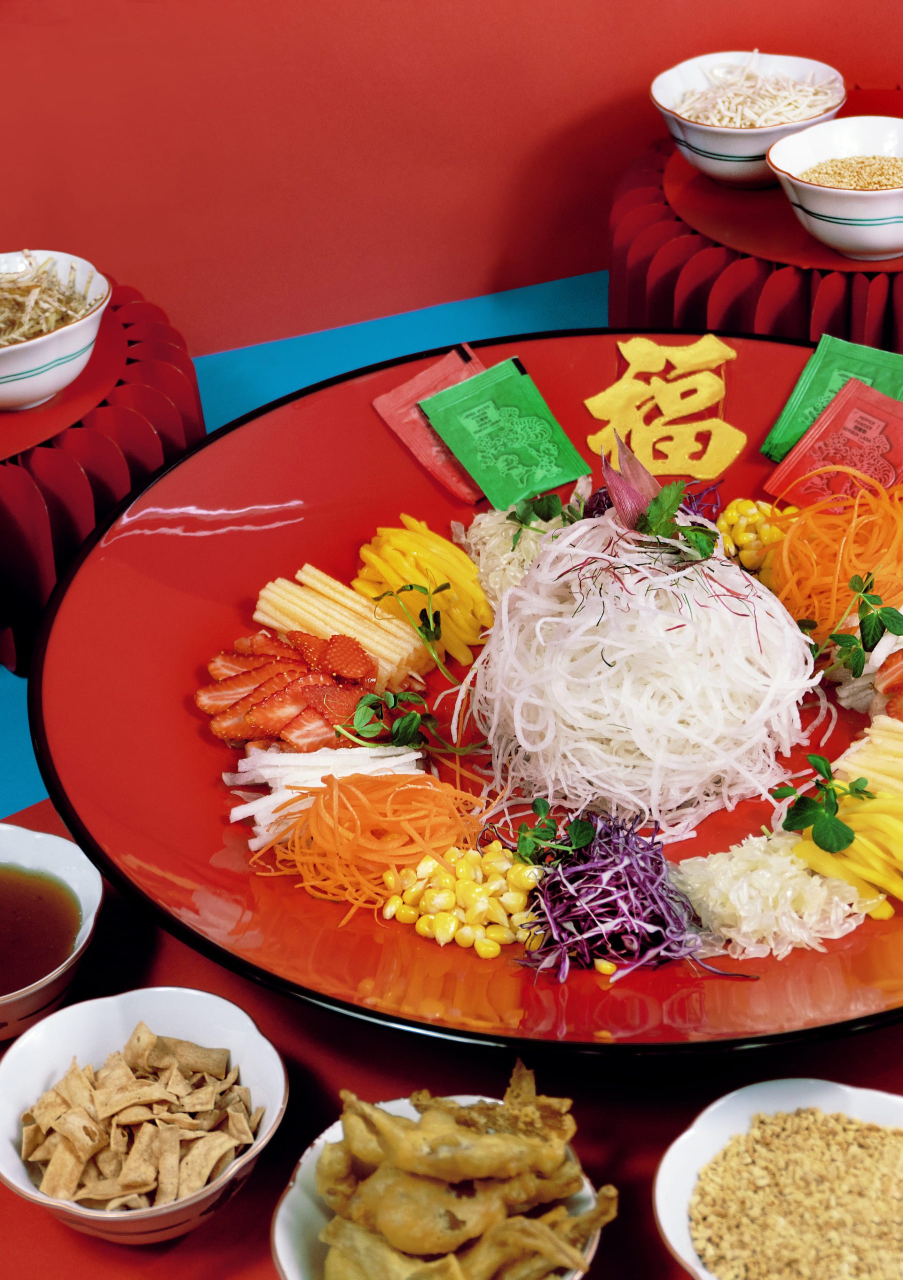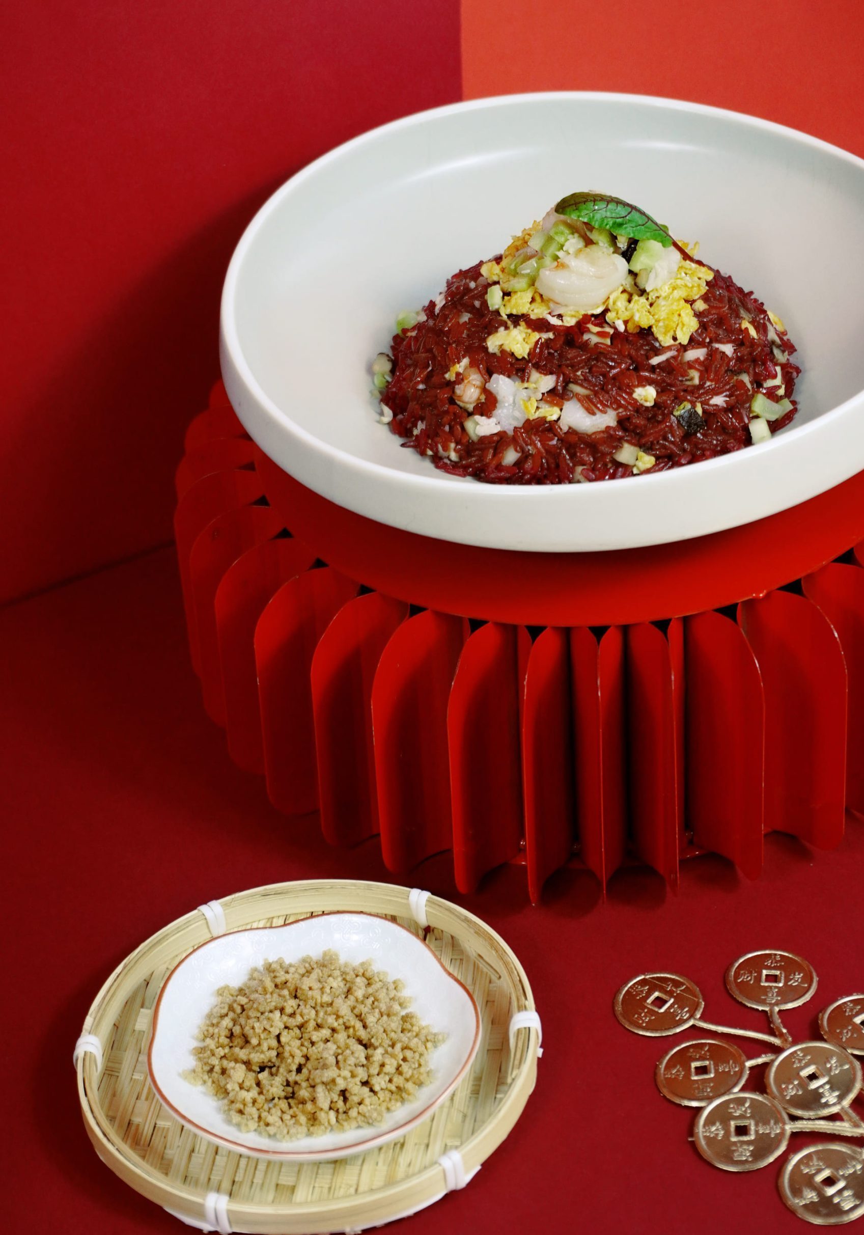Discover the Prosperous Nanyang Vegetarian Yee Sang and Wok-Fried Beetroot Rice with Prawns & Crab Meat
