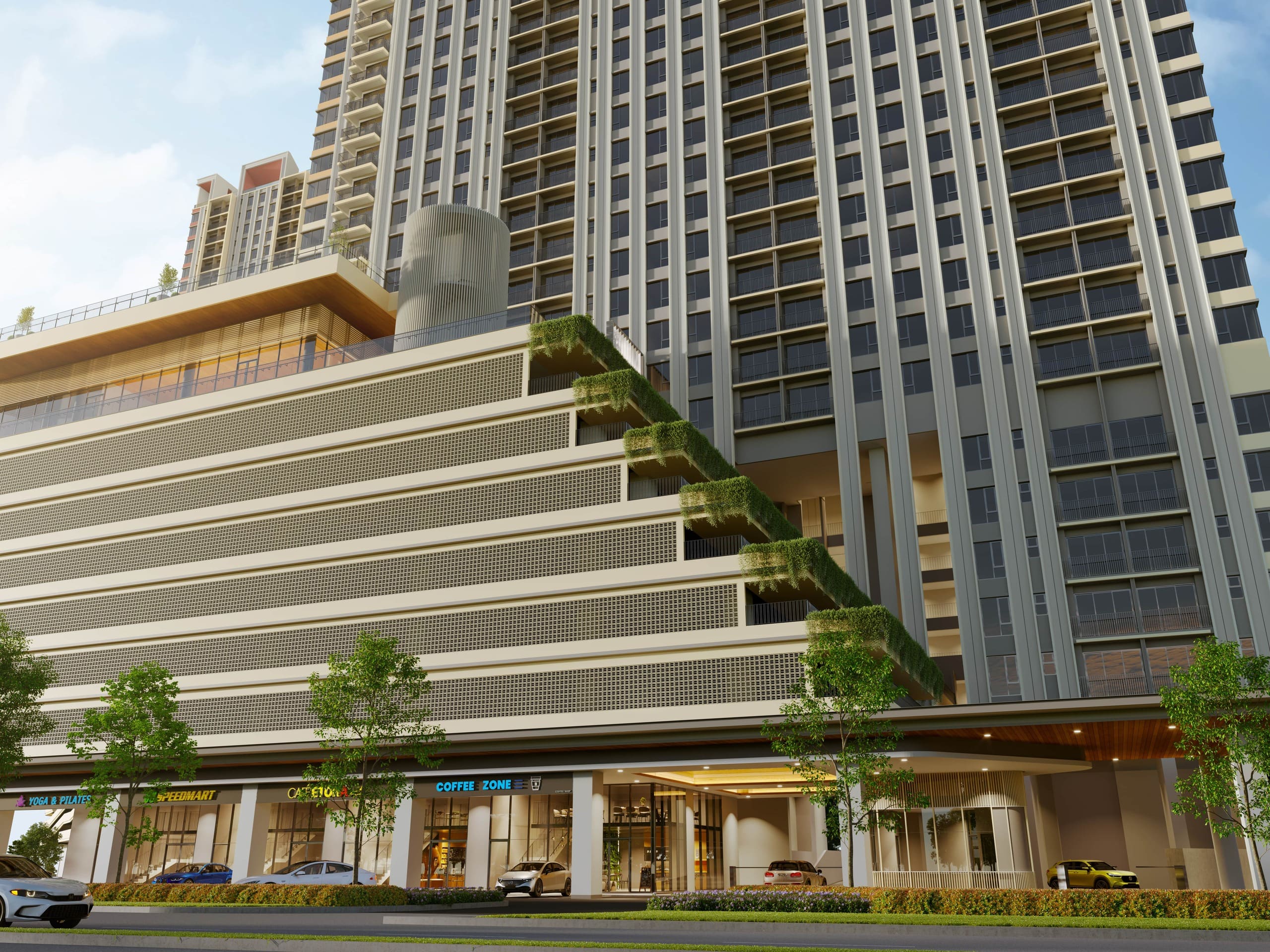 Inspired by its celestial namesake, Stellaris’ architectural concept seamlessly blends sleek, contemporary aesthetics with thoughtful, functional design. Every detail is specifically curated to create an aesthetically striking yet harmonious facade that reflects the aspirations of modern city dwellers. Bold lines and playful accents on the building’s exterior complement its tranquil landscapes, offering a perfect balance of urban sophistication and serene living.
